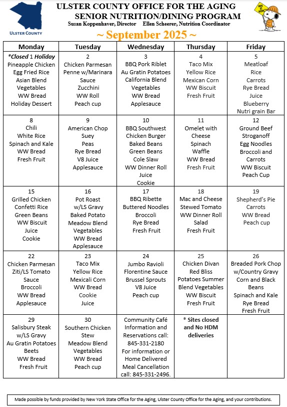 Monthly Menu for Community Cafe's and Home Delivered Meals